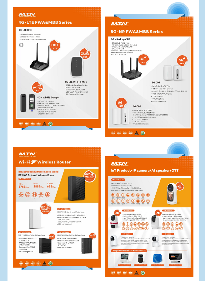 本次展會(huì),邁騰電子攜5G CPE、交換機(jī)、AI-IPC、Wifi7、云網(wǎng)絡(luò)產(chǎn)品等最新網(wǎng)通科技成果及應(yīng)用登場(chǎng)。每一款產(chǎn)品都凝聚著邁騰電子研發(fā)團(tuán)隊(duì)的智慧與心血,代表著行業(yè)的領(lǐng)先產(chǎn)品及應(yīng)用。