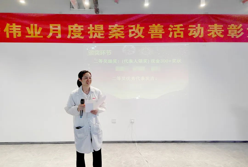 我們還邀請(qǐng)了獲獎(jiǎng)員工上臺(tái)演講。他們分享了一些關(guān)于提案改善實(shí)踐經(jīng)驗(yàn),為其他員工們提供了寶貴的啟示和指導(dǎo),激發(fā)了更多的創(chuàng)新思維。