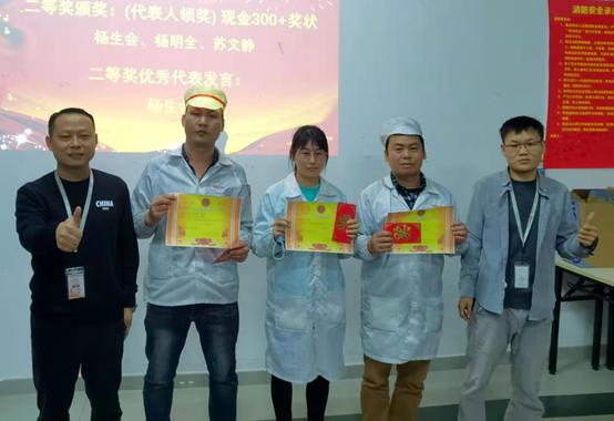 10月份,共收到員工提出153項提案,包括效率、成本、安全、品質(zhì)等各方面的改善,經(jīng)各評審小組審核評選出前三的獲獎團隊。由公司領(lǐng)導(dǎo)為獲獎員工頒發(fā)獎金及證書。