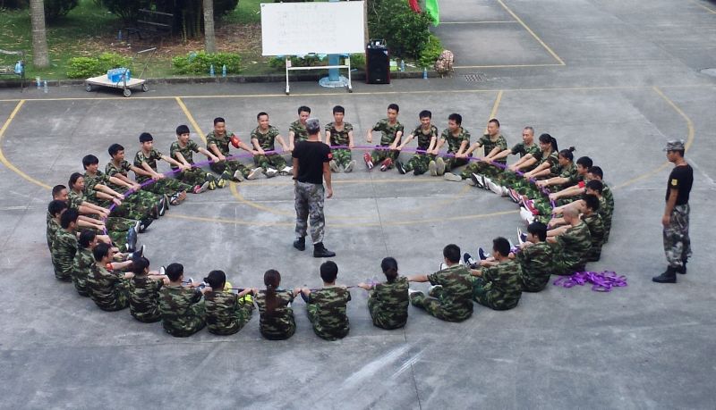 第二天我們迎來了我們的“老朋友”百年特訓(xùn)營的教官,展開短暫的一天拓展培訓(xùn),至此學(xué)員之間多了一種關(guān)系,那便是“戰(zhàn)友”!短短的一天拓展培訓(xùn)中,戰(zhàn)友們體驗到了“組建團(tuán)隊”、“創(chuàng)新贏家”、“共同進(jìn)退”、“解救人質(zhì)”四項團(tuán)隊任務(wù),每個任務(wù)都是對戰(zhàn)友間信任度、團(tuán)隊協(xié)作能力,耐力的挑戰(zhàn),但是一個個任務(wù)下來戰(zhàn)友們都出色的完成了任務(wù)。在“解救人質(zhì)”的任務(wù)中36位戰(zhàn)友挑戰(zhàn)了3500圈的勝利圈,有戰(zhàn)友在結(jié)束后說,“自己真的快不行了,最后都是靠毅力堅持下來的”,有些戰(zhàn)友甚至因此磨破了皮!“一開始就是3500圈,不達(dá)到不放手,即使很痛苦但是咬咬牙就是挺過去了,如果失敗了就是個大笑話,不要讓這成為笑話,要讓大家為之崇拜和認(rèn)可。”有為戰(zhàn)友在分享總結(jié)中這樣說道。