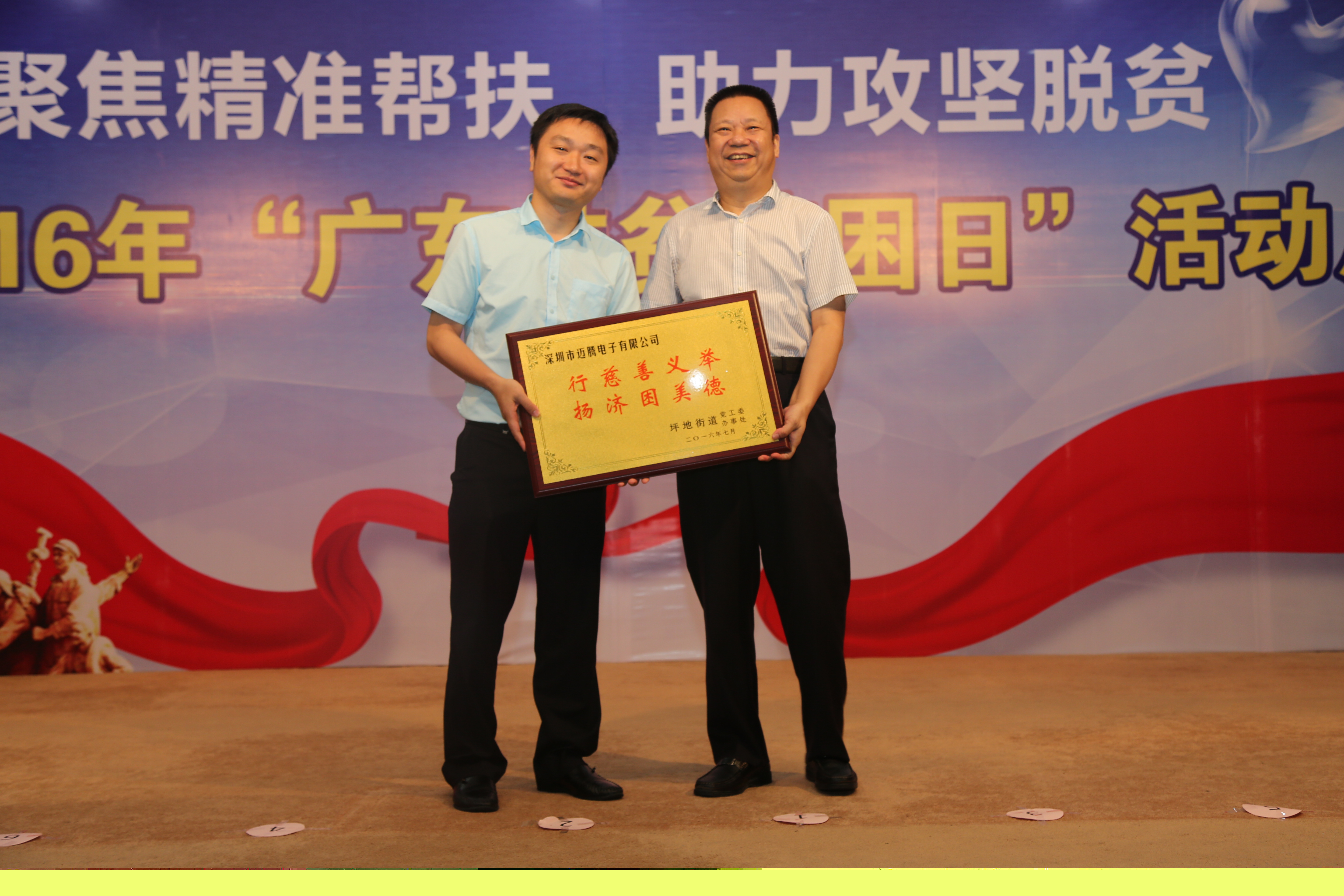 邁騰電子積極參與坪地街道扶貧開(kāi)發(fā)“雙到”幫扶工作籌集資金活動(dòng)。此次活動(dòng)公司總經(jīng)理黃能君先生代表邁騰捐贈(zèng)善款80000元人名幣,坪地街道黨工委書記鐘春平代表坪地街道現(xiàn)場(chǎng)接受捐贈(zèng)支票,并為我司頒發(fā)榮譽(yù)牌匾。邁騰用實(shí)際行動(dòng)展現(xiàn)了坪地企業(yè)良好的社會(huì)責(zé)任感和傾情奉獻(xiàn)的大愛(ài)情懷。