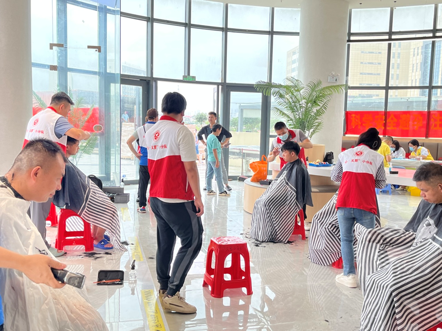義剪區(qū)域,理發(fā)師一把剪刀、一把推子、一把梳子、一個(gè)圍布,工具雖簡(jiǎn)單,但真情服務(wù)卻讓人暖在心里。為廣大員工解決“頭”等大事。